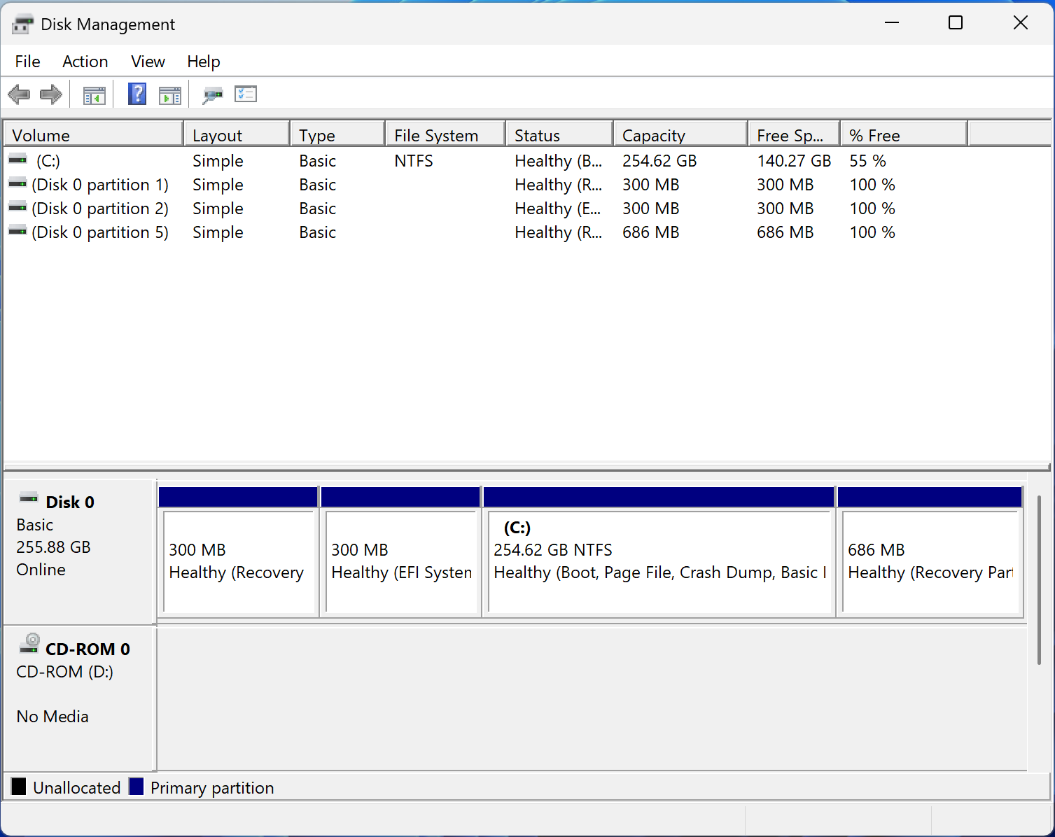 - Back in Disk Manager, I could now extend C: to take up the full space. I did so.